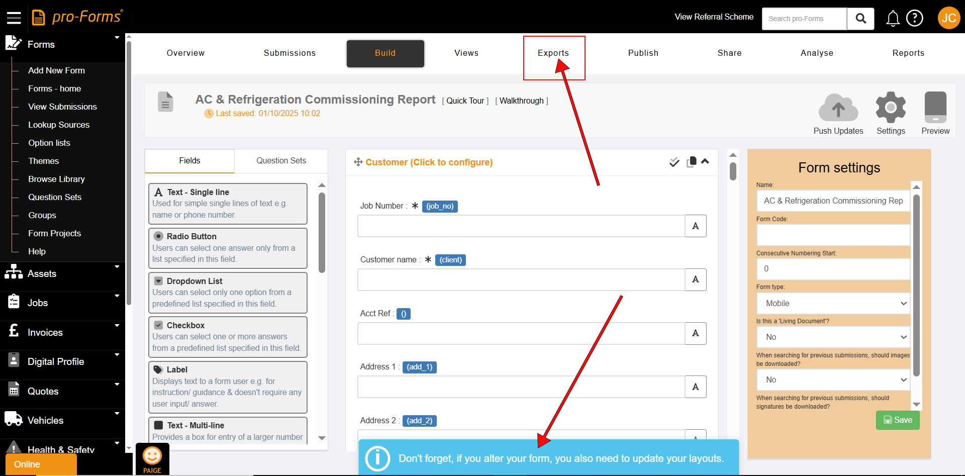 To help remind users of this and to save you raising a support query, we have added a new prompt at the bottom of the form Build section to remind people to make the change to the Layout.