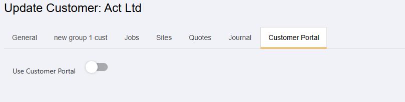 To set up access to the Customer Portal for a customer, navigate to the require customer and click on the 'Customer Portal' tab.